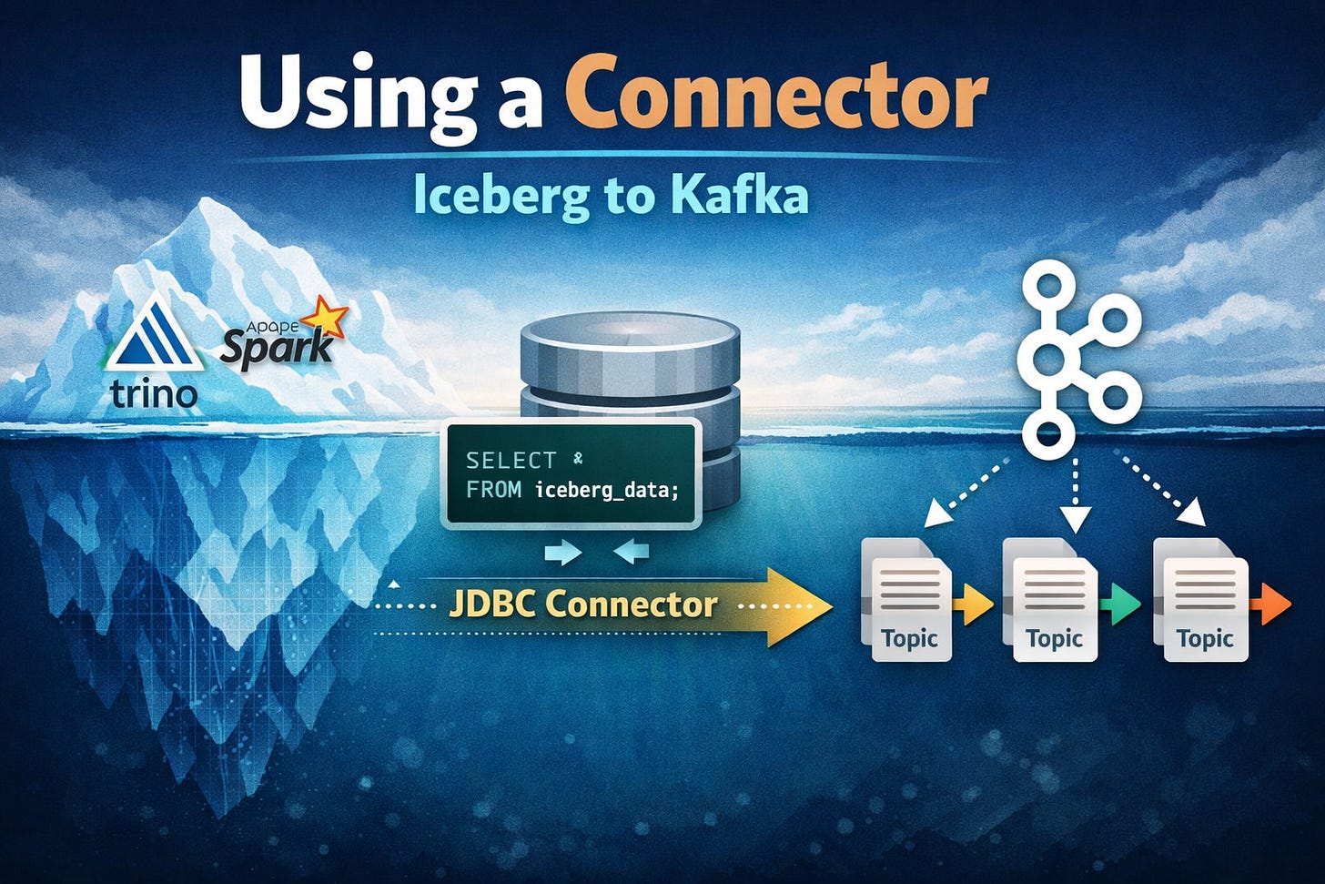 But you can still build a connector-based Iceberg → Kafka pipeline today by leaning on your favourite Iceberg query engine. For example: run Trino on top of Iceberg, then use the Kafka Connect JDBC Source Connector to query Trino and publish results into Kafka.
