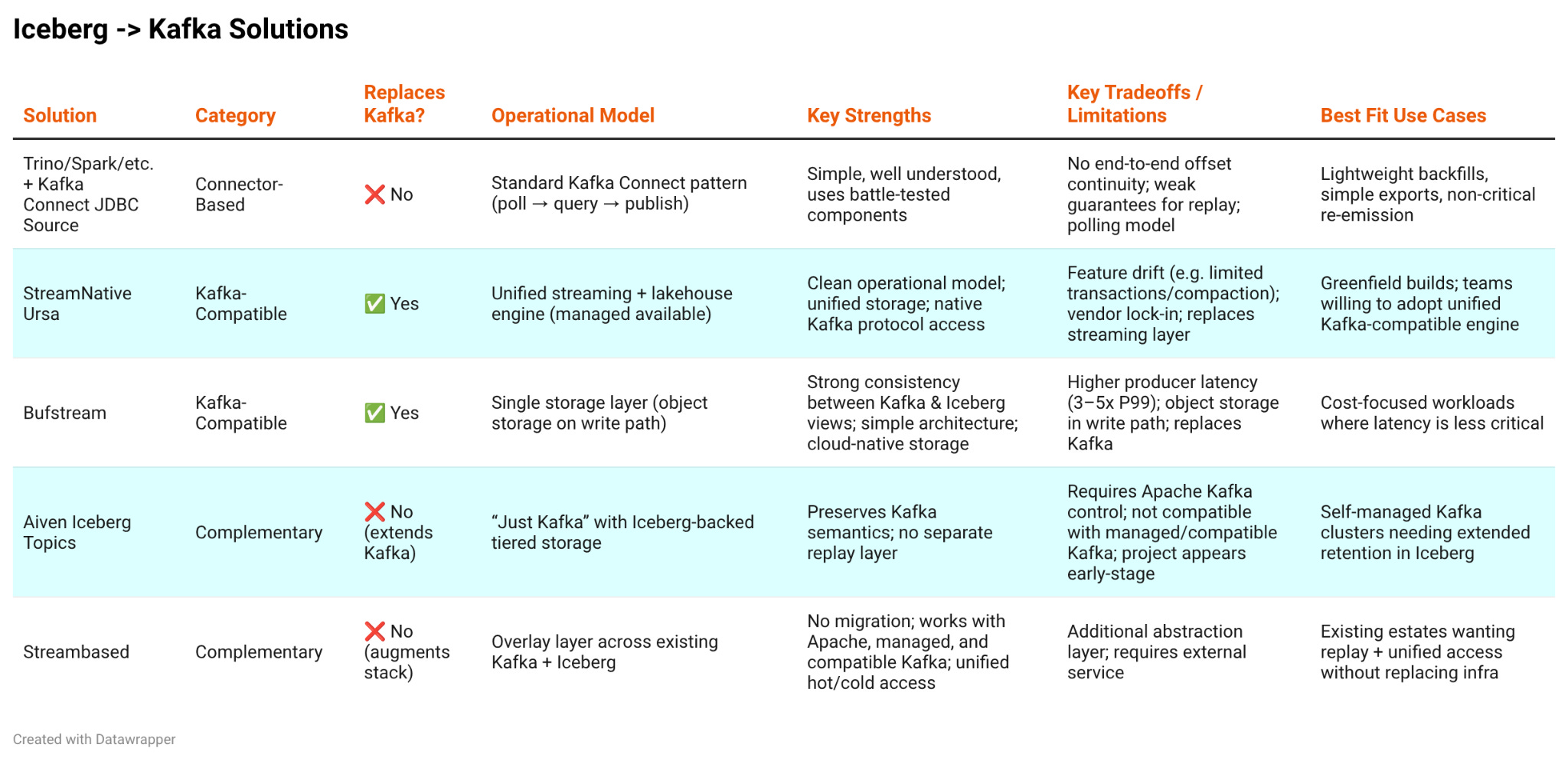 An in-depth comparison of today's solutions to the expanding Iceberg to Kafka market.