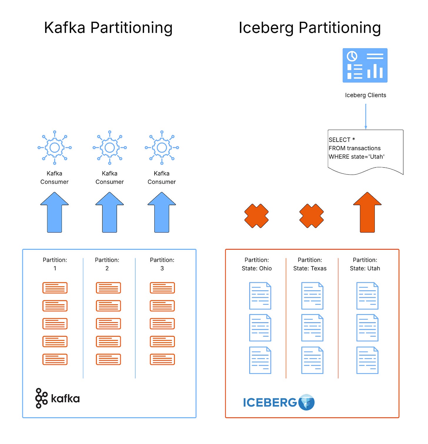Both Kafka and Iceberg have the concept of a partition but they are vastly different in meaning.